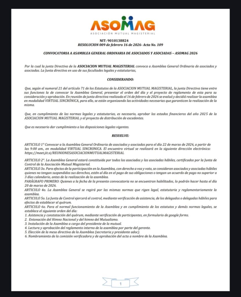 La Asociación Mutual Magisterial ASOMAG se complace en invitarlos a participar del evento más importante de nuestra vida institucional: la Asamblea General Ordinaria, que se llevará a cabo el próximo domingo 22 de marzo.